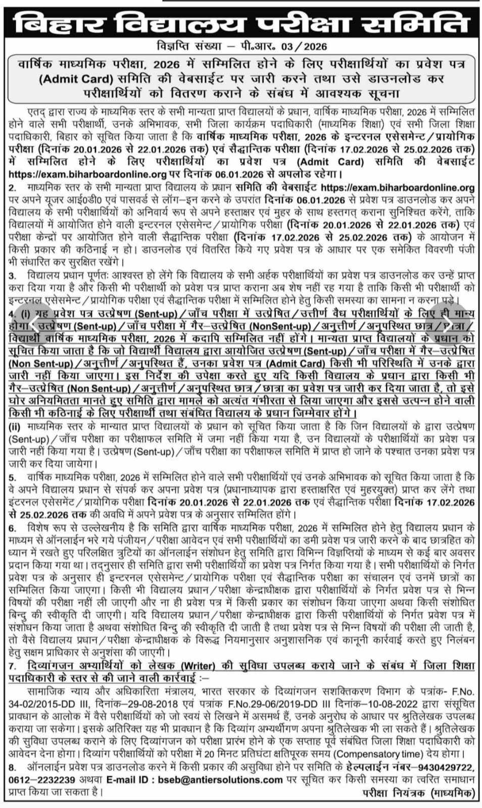 Bihar Board Matric Admit Card 2026 – जरूरी निर्देश