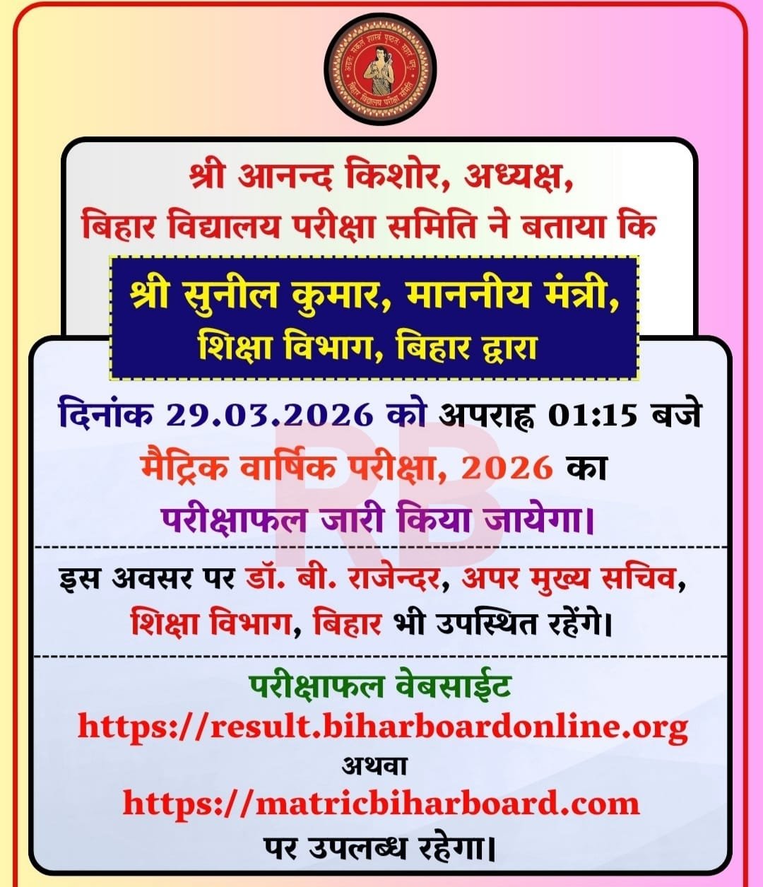 Bihar Board Matric Result 2026 : Important Links